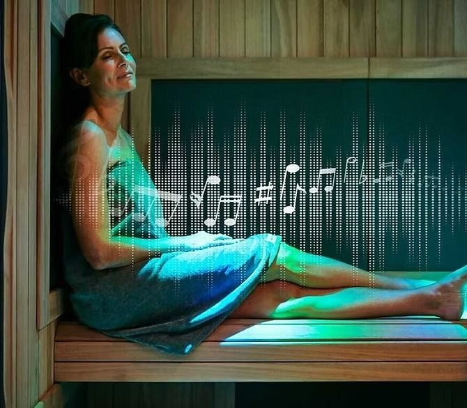 SO Sound® combines the healing effects of sound and vibration to harmonize all systems of the body bringing you to a deeper state of relaxation. Attached at specific locations in the sauna, the SO Sound® system uses an amplified audio signal to resonate sound waves to the surface of the sauna. Listening to soothing music and feeling it resonate throughout the body stimulates the body's natural relaxation response. It feels like light touch massage during your sauna session. This feature may be turned off based on user preference.